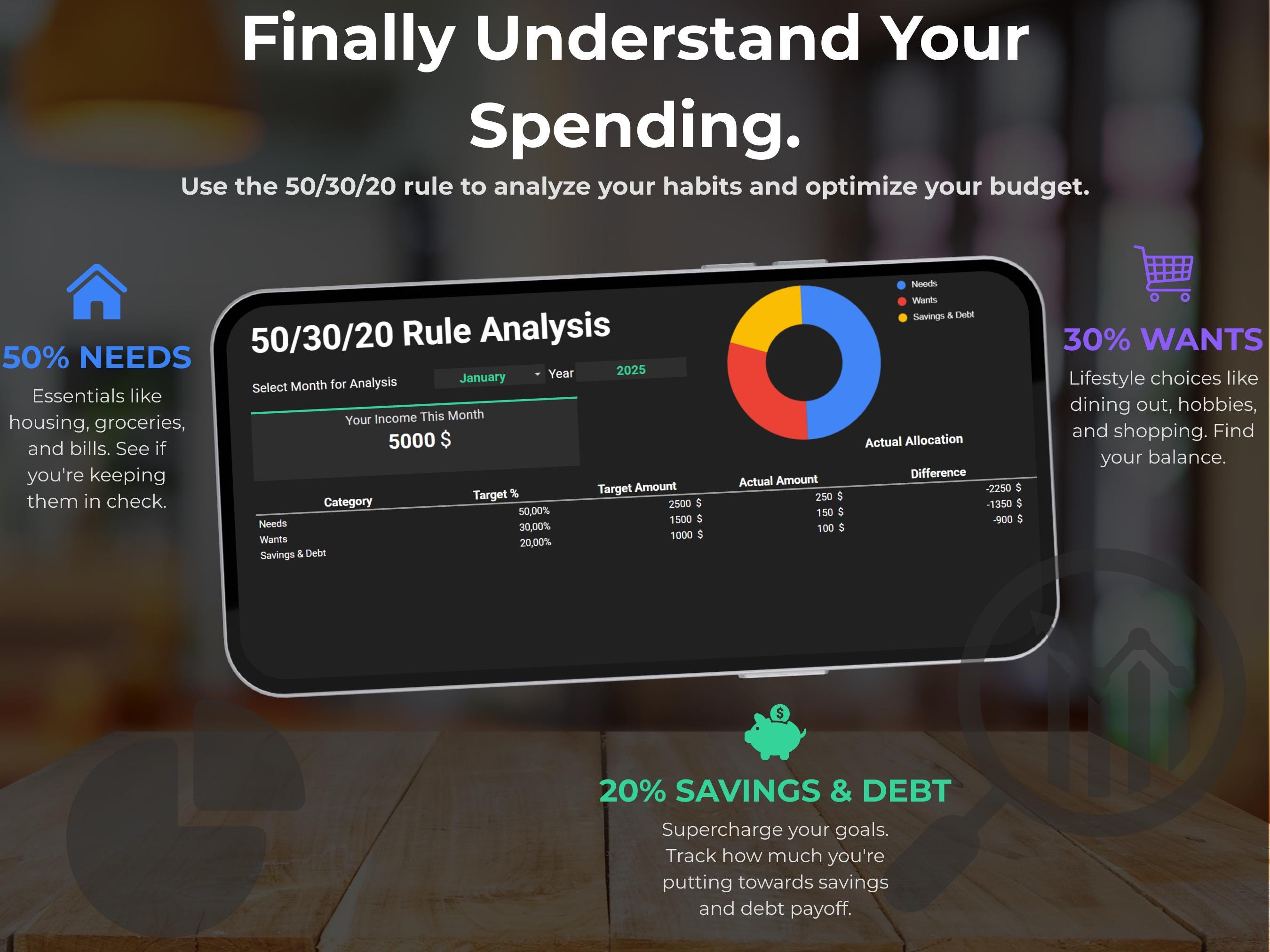 50/30/20 Rule: Analyze your spending and find your perfect balance.