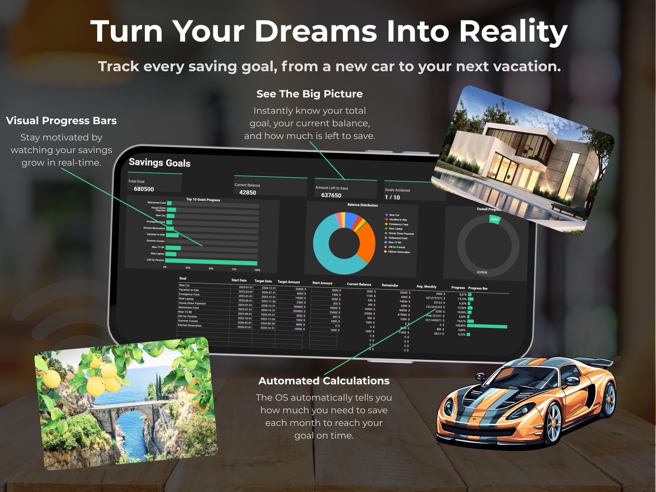 Achieve Your Dreams: The Savings Goals tracker with visual progress bars keeps you motivated on your journey to saving for what matters most.